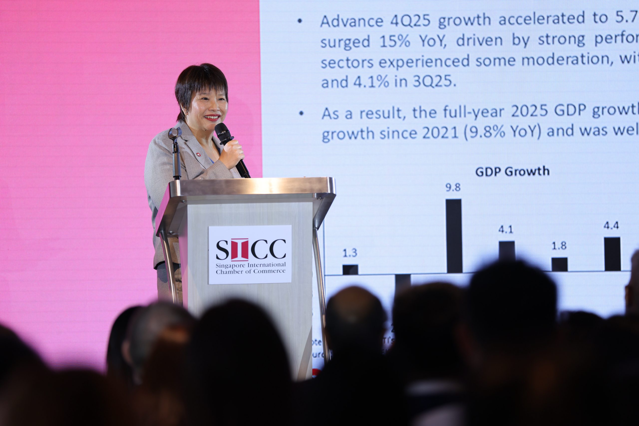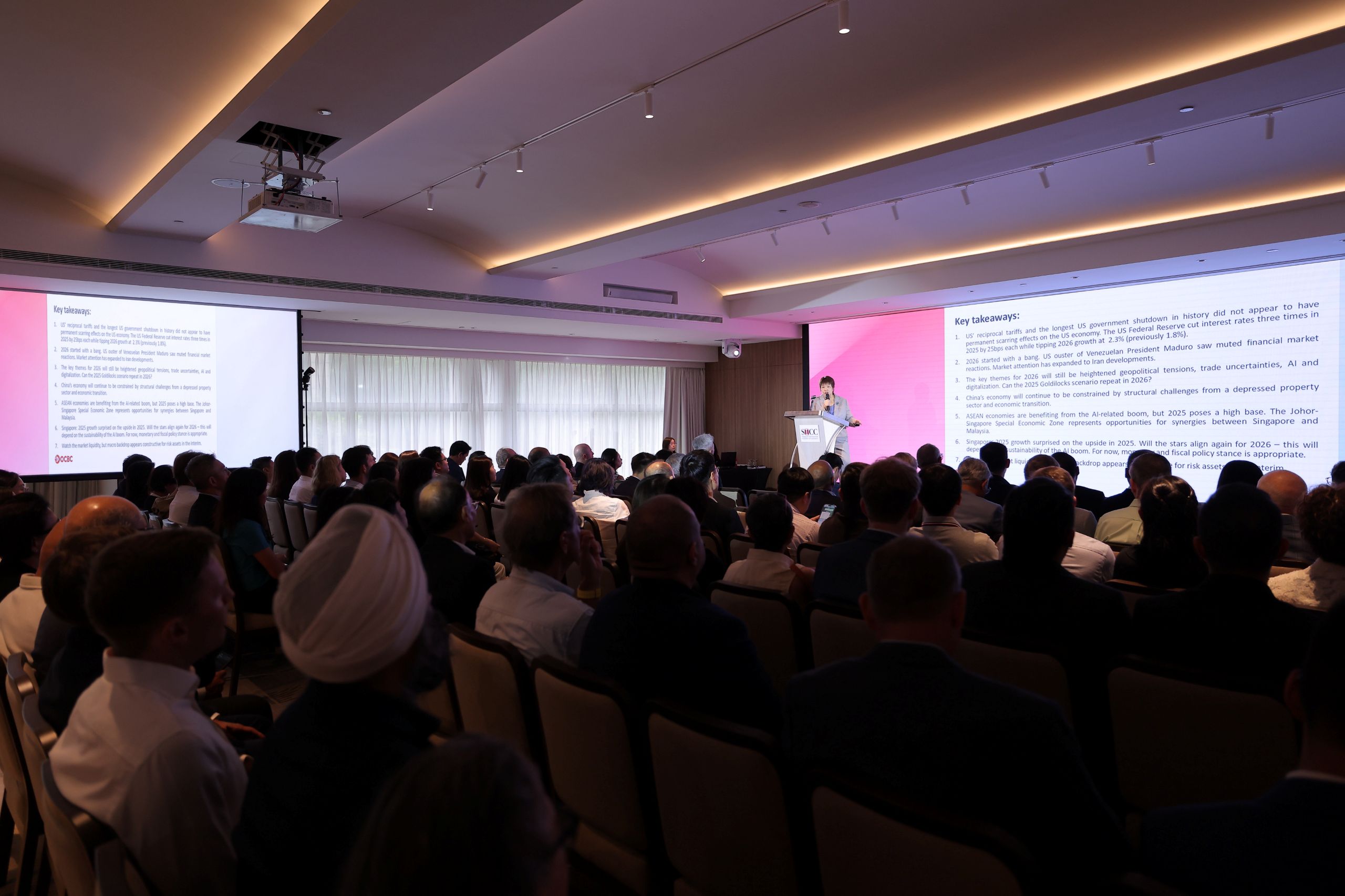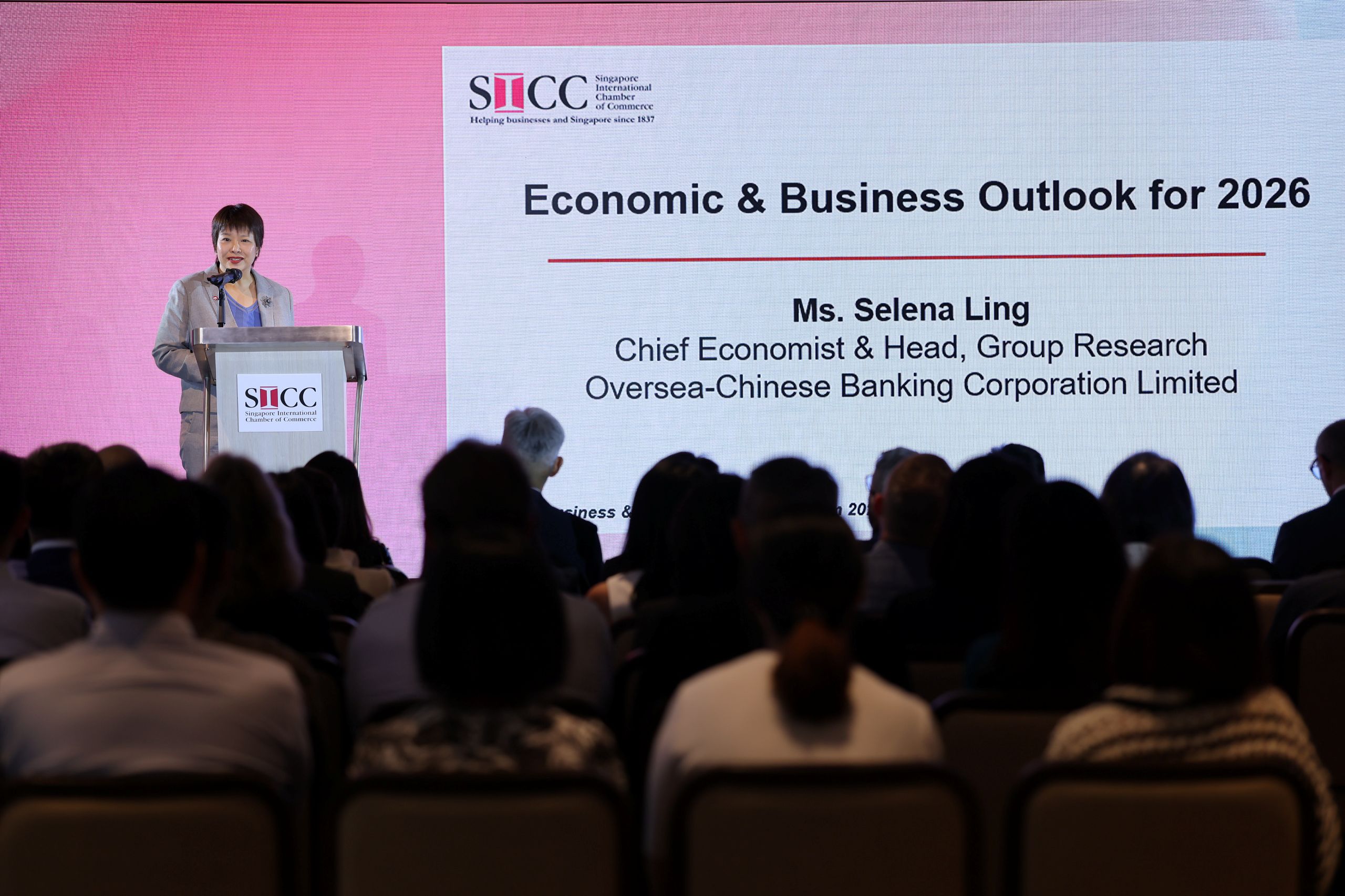 The forum began with Ms Selena Ling, Chief Economist & Head, Group Research, Oversea-Chinese Banking Corporation Limited, who shared perspectives on the global and regional economic outlook, spanning major markets such as the US and China, as well as developments in Malaysia and Indonesia. Her insights set a strong foundation for understanding how global shifts may impact businesses operating in and from Singapore.